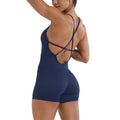 Sleeveless & Backless: This women's athletic jumpsuit features a sleeveless design and an alluring open back detail, adding a touch of style and breathability to your workout wardrobe.