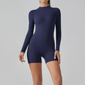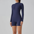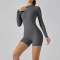 Zipper Tracksuit Set Women Yoga Jumpsuit Stand Collar Half Long Sleeved High Waist Butt Lift Fitness Sports Bodysuit Leggings